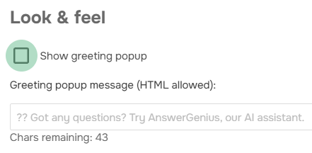 You can now disable AnswerGenius’s automatic greeting when users open the chat. Some prefer a minimalist interface without automatic messages, and now they have that choice.